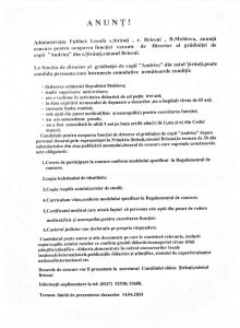Anunț public – concurs pentru ocuparea funcției vacante de Director al grădiniței de copii ”Andrieș” din s. Șirăuți, raionul Briceni!